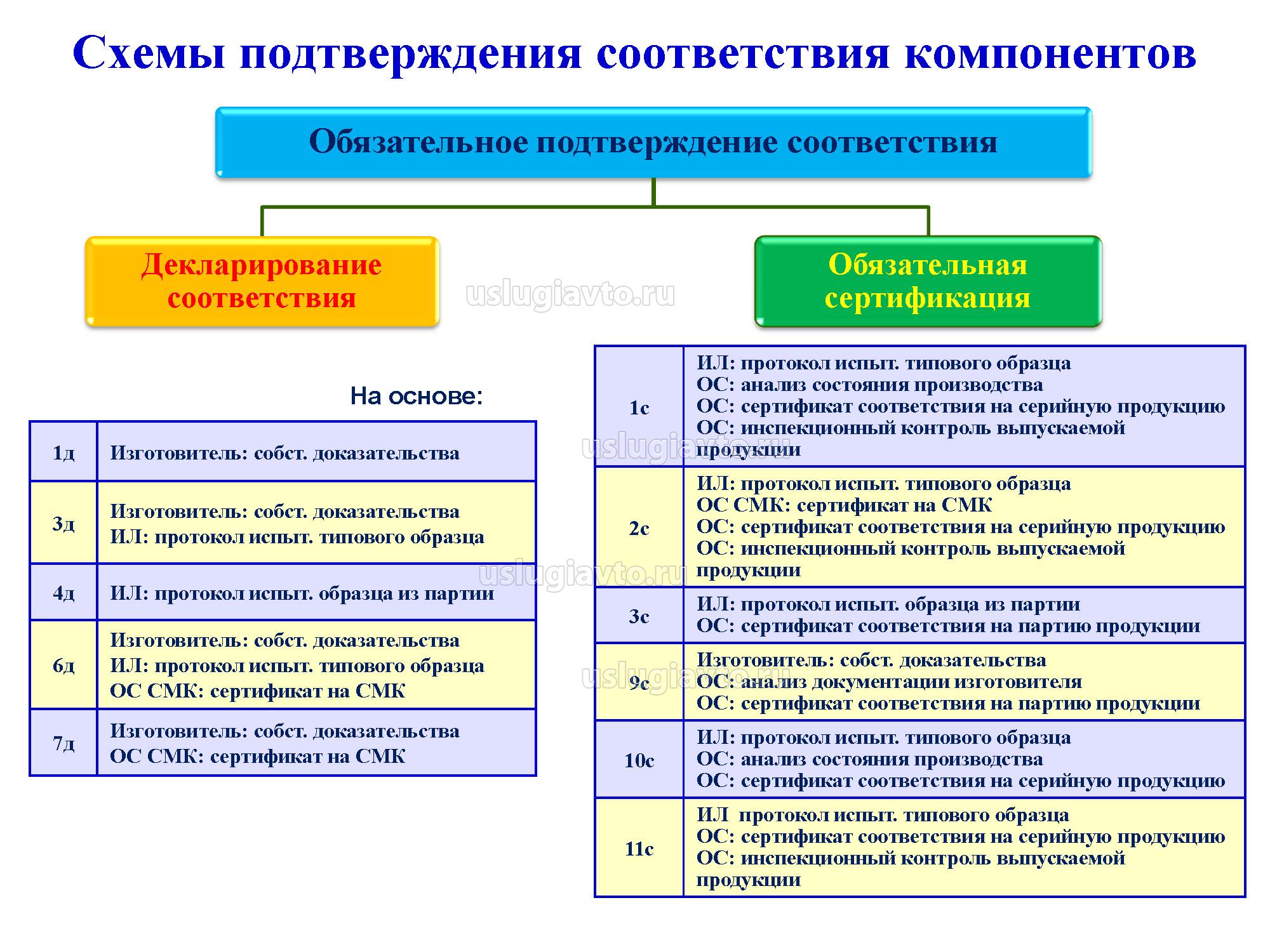Разрешенные формы и схемы подтверждения соответствия в зависимости от типов компонентов предусмотрены приложением N 10. Описание схем подтверждения соответствия и рекомендации по их выбору предусмотрены приложением N 19 к настоящему техническому регламенту.